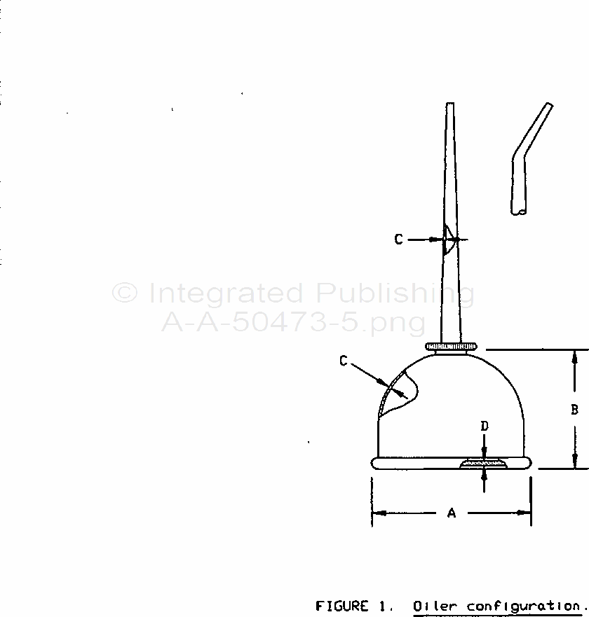 A-A-50473 Oilers, Hand, Push-BottomThis CID covers the requirements for push-bottom hand oilers. The oiler shall be of cold-rolled steel. The oiler shall consist essentially of a top section with spring-action bottom, a washer, and a threaded removable spout.