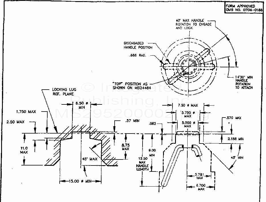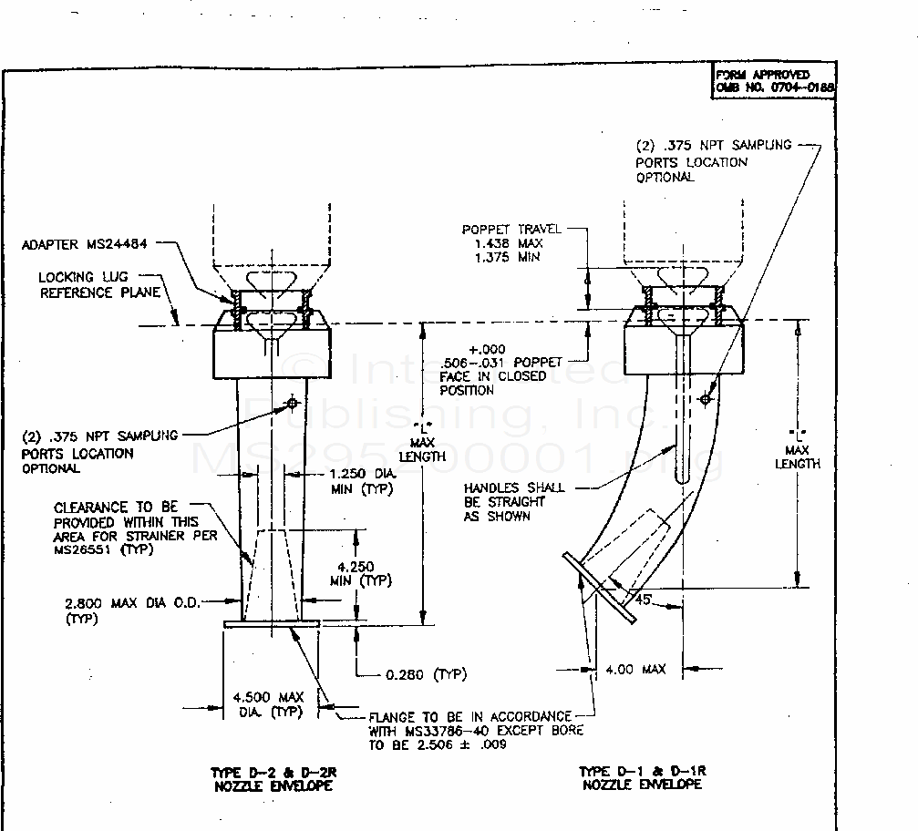 MS29520 Envelope Dimensions Nozzle, Pressure Fuel Servicing Locking Aircraft, Type D-1, D-1R, D-2 And D-2R